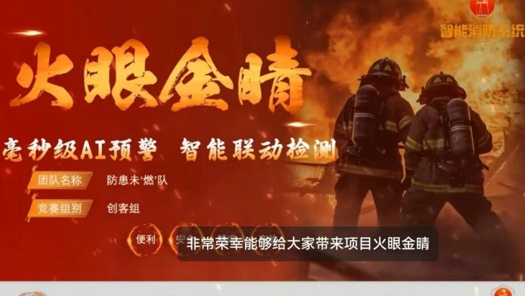 项目亮点:毫秒级AI消防系统,守护仓库等高风险场所,火焰监测模型准确率91.43%,已与房山区消防总队试点,获资本认可。