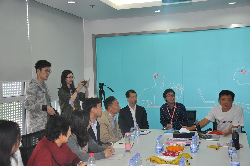 师生们首先参观了公司的研发、曲库制作、UI形象设计、技术支持等部门,实际体验了“哇屋”、个人KTV系统等产品。面对母校师生,作为专注于点歌系统的公司,马杰介绍了企业的概况、文化,以及创新、创业的历程。他谈到企业一定要专注,要学会做减法而不是加法,要认清自己的不足。谭国斌介绍了公司的大数据平台以及应用思路。随后,师生与雷石公司的老总和员工们,就创新创业、企业文化、图像处理、语音处理、大数据技术及相关应用、云服务等方面进行了广泛而深入的交流。交流期间,蔡强院长向马杰总经理颁发了计算机技术学科硕士研究生实践导师证书。