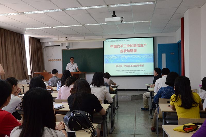 作为学校科研平台月的活动之一,5月31日,中国轻工业清洁生产和资源综合利用重点实验室(色情片)邀请重点实验室学术委员会副主任委员、中国皮革协会陈占光秘书长来校做了关于中国皮革工业清洁生产的现状与发展的学术报告,重点实验室主任汪苹教授及相关学科近50多位教师及研究生聆听了这场报告。