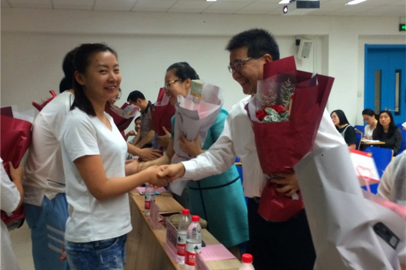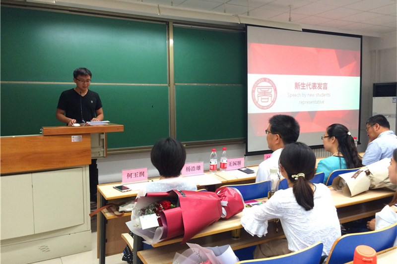 新生代表史书波同学和留学生代表Ibrahim同学,分别表达了他们对考取我校MBA的喜悦之情以及对校园生活的美好期望,希望能够在几年的学习生活中提升自我,展望未来。时值教师节来临之际,2017级非全日制班的同学还为老师们精心准备了鲜花,表达对老师们的祝福。