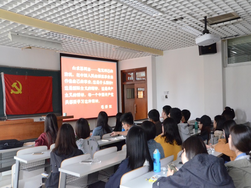 全体成员一起观看了历史记录片《白求恩》。影片讲述了白求恩一心向党,为党和人民奉献一生的感人故事,大家看完后都感触颇深。由董笑笑、张楚童、斗海峰三位积极分子为大家分享了观后感。此次影片的观看激发了在场每一个人的斗志,大家一致认为想要向党组织靠拢,就一定要学习白求恩同志牺牲自我、无私奉献的精神,为共产主义事业奋斗终生。
