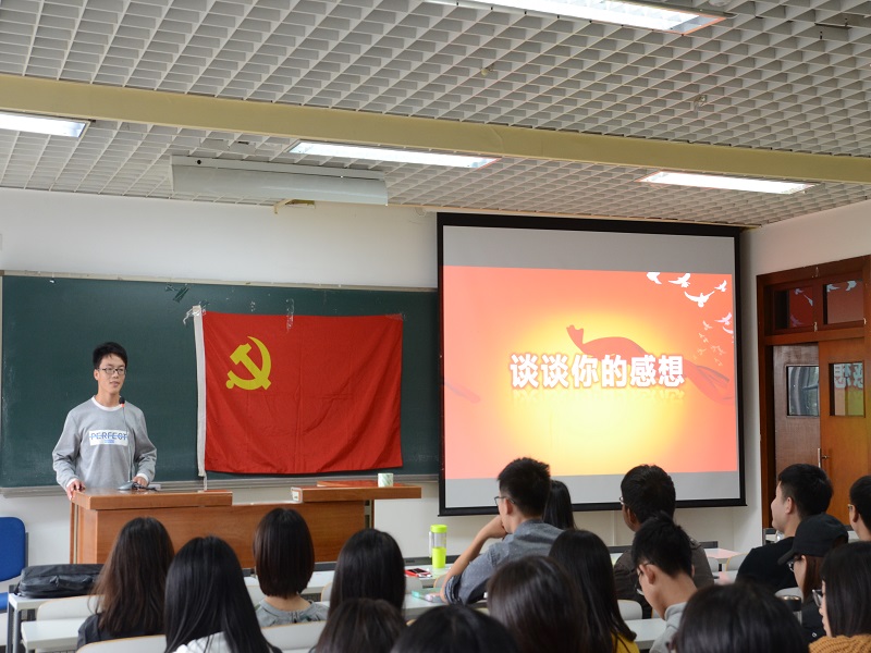 首先,由八支部书记邹天舒同志为大家讲述即将召开的十九大会议的简要背景及其重要性。中国共产党自建立以来走过了风风雨雨,我们在实践中开辟了适合自己国情的新道路,即将迎来十九大,我们更应该坚定我们的信念,在艰苦奋斗中磨练自己,紧跟共产党的脚步不动摇。