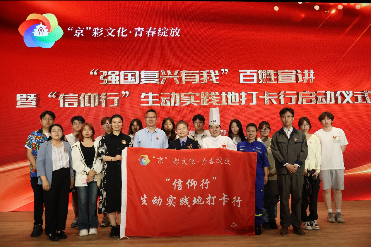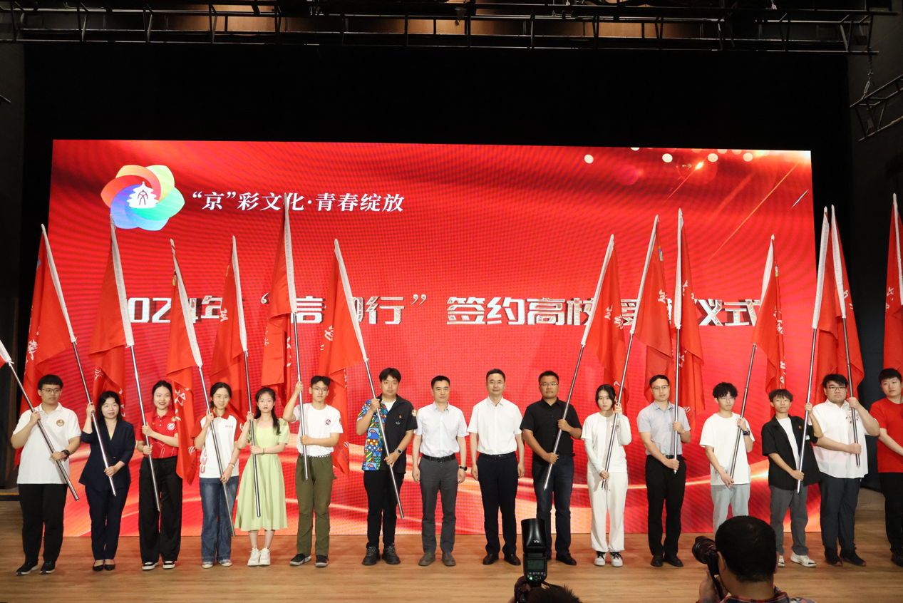 2024年,“‘京’彩文化 青春绽放”行动计划——“信仰行”全面提档升级,我校作为六所新增高校之一,成为“新鲜血液”加入“信仰行”,与首批8所高校合力将“京”彩力量传递与绽放。市委宣传部副部长张际同志、市社会科学院党组书记谢辉同志为14所“信仰行”签约高校授旗,号召广大青年在行走中感受新时代伟大变革,切身体验习近平新时代中国特色社会主义思想在京华大地的生动实践。