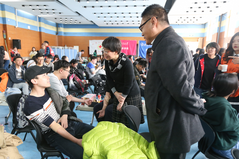 本次活动受到学校、学院重视,学生处处长吕素香到现场看望献血师生和志愿者,积极与献血者们交流,关心他们的情况,谈及献血活动的意义时,她说:“同学们的踊跃不仅体现了自身的一片热忱和真心,更是引领了当代大学生的风貌。”商学院党委副书记樊江涛一直陪伴着同学们,时刻关注现场情况。