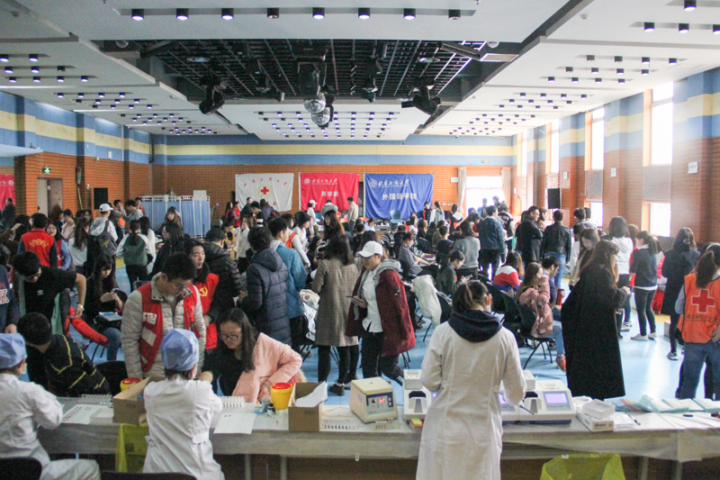 冬日的严寒慢慢褪去,春日的曦阳温暖着每个人的心,3月21日8点,由学校红十字会主办,商学院、外国语学院承办的无偿献血活动正式开展。刚过7点,准备献血的同学们便等候在学活大厅,排着整齐的队拿表、填表。与此同时,志愿者们也早早在学活大厅就位,他们整装待发,将一切的准备工作落实完成。