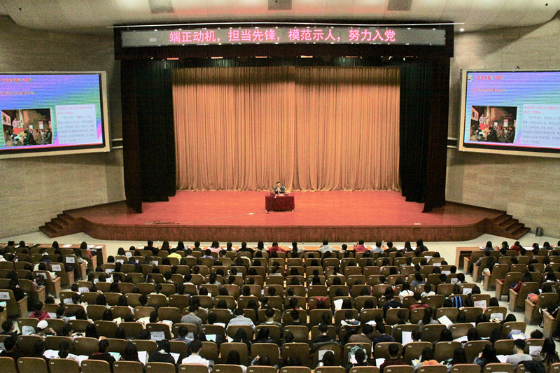 在激昂肃穆的国歌中,开班典礼正式开始。何猛做动员报告,她提到,食品学院、商学院、艺传学院党委高度重视入党积极分子培训,按照控制总量、优化结构、提高质量的要求,不断解放思想,与时俱进,给同学们提供理论武装的高地。她希望通过党课理论知识、党课实践活动、党课专题片和党课小组讲座交流等系统学习,同学们能够勤学善思、勇于实践、严格要求,树立正确的入党动机,坚定理想信念,在实践中国梦的生动实践中放飞青春梦想。