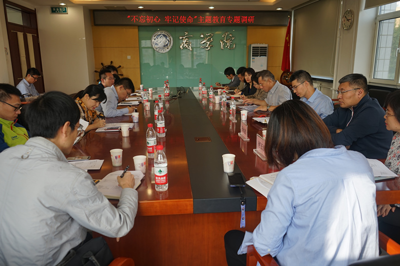 10月9日下午,副校长谢志华到商学院开展“不忘初心、牢记使命”主题教育专题调研。学校纪委副书记郑喜姣、纪检干部孙栋汉陪同调研。学院领导班子成员、院长助理、教工党支部书记、系主任等参加调研活动。