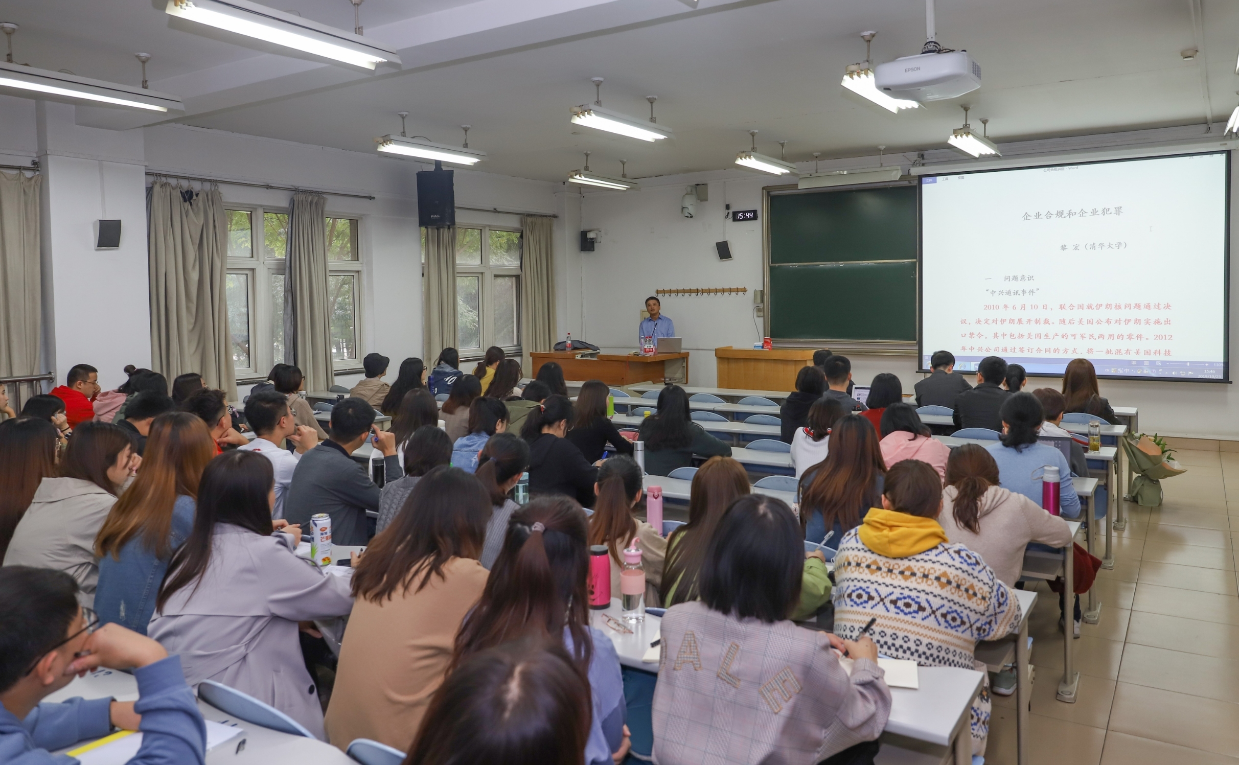黎宏教授通过“雀巢收集医院信息案”和“中兴通讯事件”案例引入企业犯罪和企业合规的概念,接下来进一步阐述了企业犯罪及其刑事责任、企业合规计划和企业刑事责任的具体内容,最后,黎宏教授总结了我国刑法第30、31条所规定的单位犯罪包含的三种情况,分析了我国企业犯罪中的存在的问题,单位犯罪和个人犯罪的区别。着重剖析了企业合规如何分清企业与员工的刑事责任问题,明确何种情况下企业承担刑事责任、何种情况下为员工个人责任。在将近两个小时的讲演中,黎宏教授用浅显易懂、鲜活生动的例子将丰富的企业合规与企业犯罪理论与知识传递给在座的师生们,黎宏教授渊博的学术知识、严谨的学术作风给在场师生留下深刻印象。讲座后,黎宏教授对同学们提出的问题予以耐心解答,教师学生均表示受益匪浅。