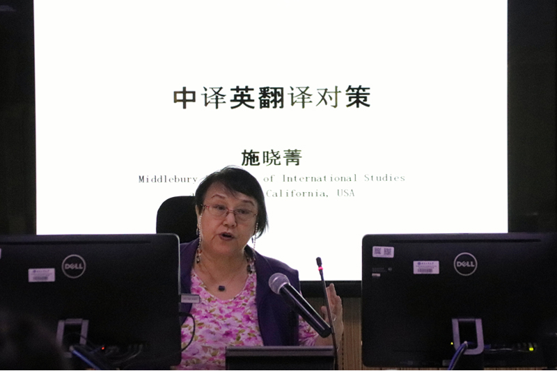 10月22日,美国蒙特雷国际研究学院(MIIS)高级翻译学院副教授、国际会议口译员协会(AIIC)会员及亚太区主管、联合国资深同传译员、AIIC会员、中国外文局教育培训中心顾问施晓菁教授应邀来外国语学院举办题为“中译英翻译对策”的讲座。外国语学院院长刘红艳,学院研究生和本科生参加了本次讲座。本次讲座由刘院长主持。