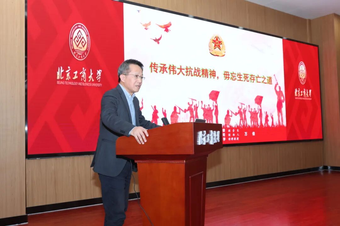 马佳艳在致辞中强调,传承伟大抗战精神是一份薪火相传的责任与担当。她指出,抗战先辈以“宁死不屈”的意志捍卫山河,当代青年则应以“不懈奋斗”的姿态守护这来之不易的和平与发展。她希望全体同学能从榜样的奋斗故事中汲取力量,以饱满的热情与坚定的信念积极投身实践,让抗战精神在青春的践行中熠熠生辉。