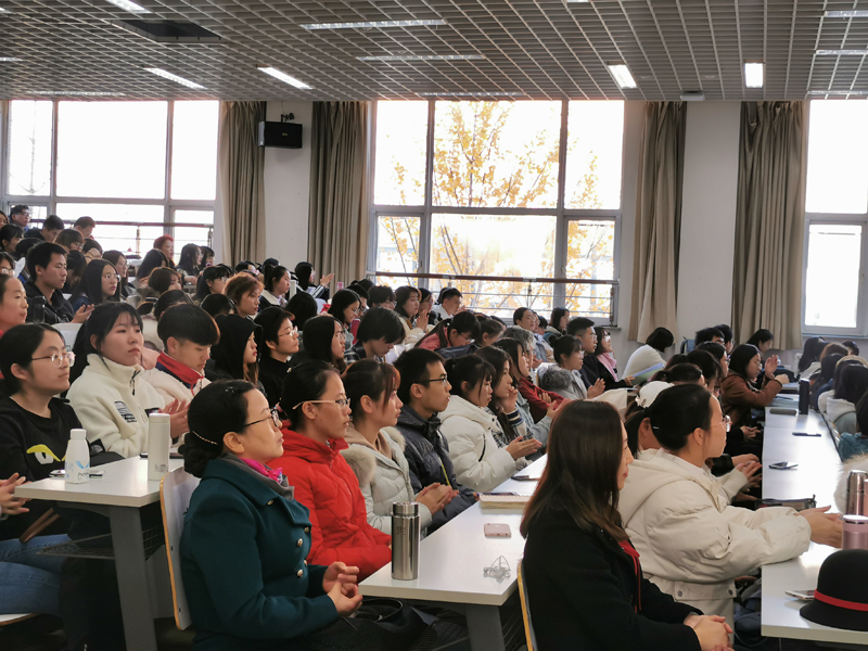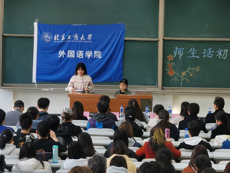 以纪念新中国成立70周年为契机,深入贯彻“不忘初心/牢记使命”主题教育,进一步加强学风建设,外国语学院于11月13日下午召开“师生话初心,奋进新时代”秋季学期导师学生恳谈会。院长刘红艳、党总支书记任金晶、副院长苗天顺、党总支副书记于涛、院长助理王晓庆、院长助理王景云,全体导师、班主任及17、18、19级全体本科生参加会议。会议由团委书记张悦主持。