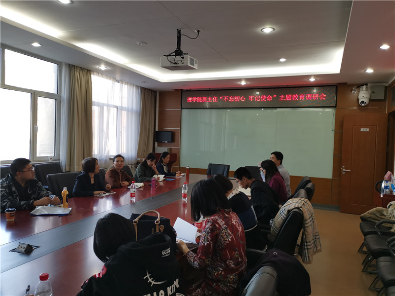 11月13日下午,理学院召开班主任“不忘初心、牢记使命”主题教育调研会。学院党委书记马春晖、副书记杨秀萍、各班班主任、学生成长发展导师及辅导员参加会议。会议由杨秀萍主持。