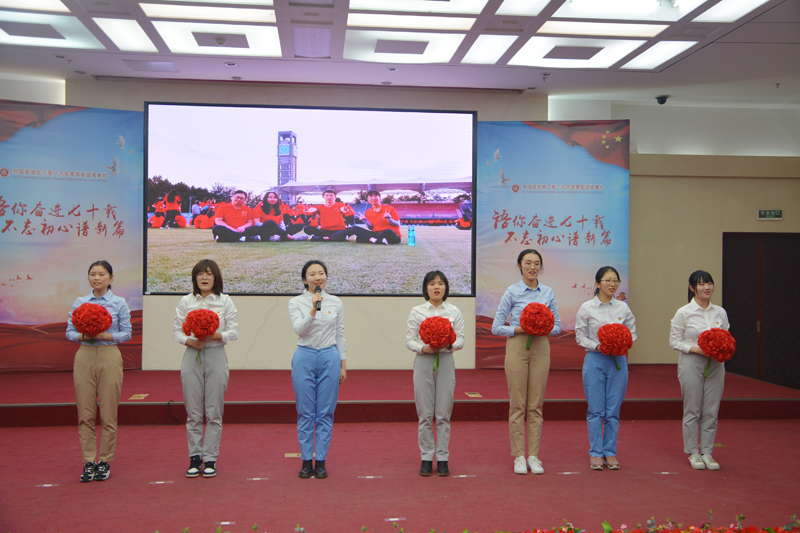 为表彰先进,展优秀学子之风,树积极进取之貌,在全院学生中形成向先进榜样看齐的学习风气, 12月25日下午,外国语学院在良乡校区举行2018-2019学年“语你奋进七十载,不忘初心谱新篇”表彰颁奖典礼。学生处副处长盖晓庆、外国语学院党总支书记任金晶、院长刘红艳、党总支副书记于涛、副院长苗天顺、院长助理王晓庆出席,外国语学院导师及班主任代表、辅导员、本科生及研究生参加本次典礼。