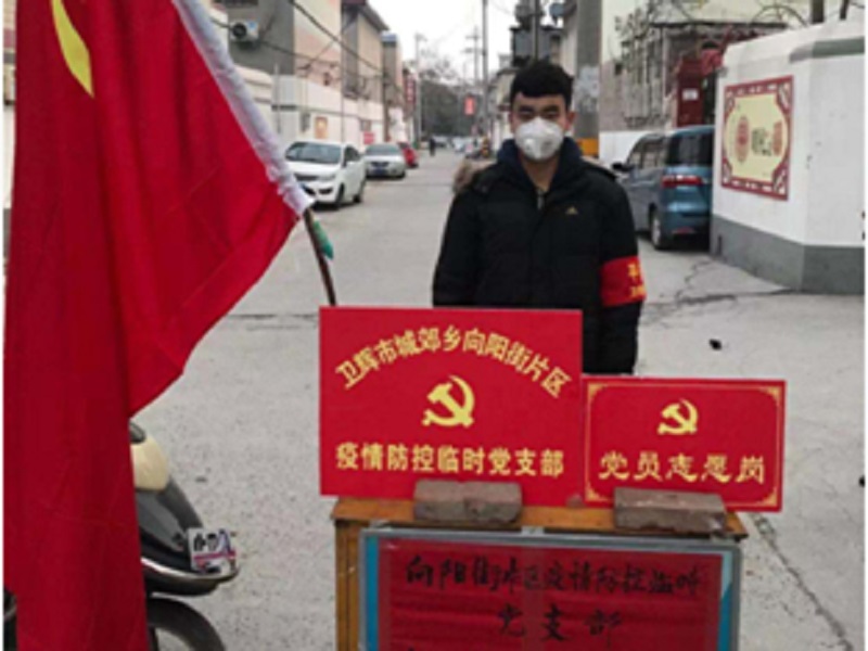 疫情就是命令,防控就是责任。寒假在家期间,正值新冠肺炎病毒爆发之时,他响应党中央和国家的号召,承担起作为一名入党积极分子的责任,自愿向河南省卫辉市党组织报名,以志愿者的身份积极投入到各社区街道的防疫工作中去,他就是苗晟源——计算机与信息工程学院19级计算机科学与技术专业的一名学生,也是一名积极向党组织靠拢的大学生青年。