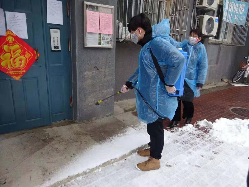 张晨光介绍到,他主要负责两栋楼的消毒工作。在此之前,每每想到医务人员纷纷逆行前往武汉,身为党员的他总觉得心中有愧,一直被别人守护,却什么都帮不上忙,所以当他背着近三十斤箱子,爬上爬下地喷洒消毒水时,身体是累的,心里却平静了下来。