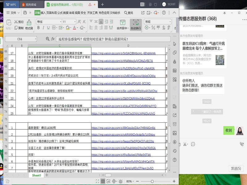“任务形式可以变,但工作目标不能变!”发生疫情后,宋沐轩积极参与了山东省联合救灾网络潍坊疫情防控协调平台,并利用自己的经验和专业知识,对网络上的相关疫情新闻进行过滤,并利用微信、QQ等方式进行推送和传播,澄清辟谣、正向发声,为网络空间的清朗贡献一份力量。