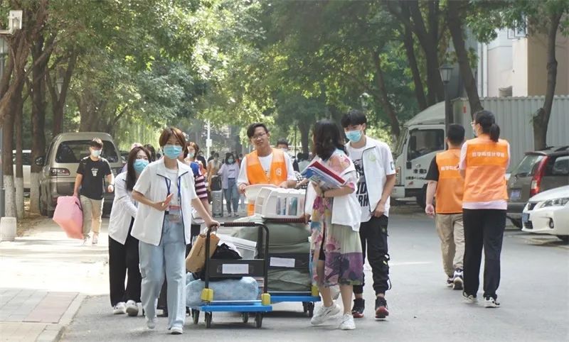 天色微亮,负责引导接待新生的全体工作人员以及班主任助理早早到达学院新生报到处,热火朝天的布置新生报到场地,搬运整理新生材料等。今年受疫情影响,校园实行封闭式管理,家长及外来车辆不能进入校园,但学院安排身穿白色小马甲的工作人员和志愿者热情帮助新生办理报到手续,搬运行李,一对一的贴心服务,每一名工作人员都面带笑容,带着一颗热情而负责的心将新生一站式服务到宿舍。新生们都表示,进入大学的第一感受是兴奋和期待,希望自己可以在这里学习到更多知识,结识更多朋友;同时,也对热心帮助的工作人员表示感谢。