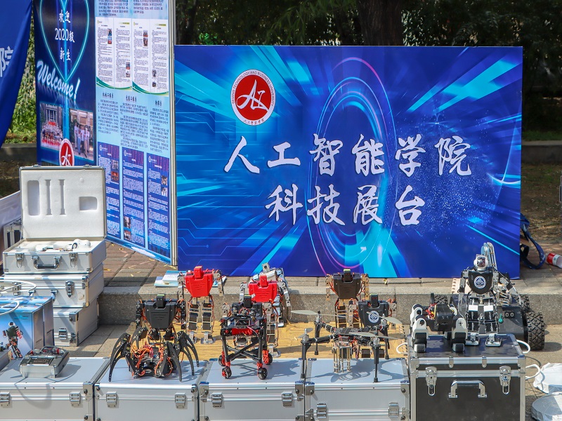 迎新工作如火如荼进行,学院安排了迎新志愿者服务队伍,新生班主任助理、团学骨干、学生党员、退伍学长等共计一百余名学长学姐统一身穿紫色院服,从新生进入校门开始全程引导接待,送至学院迎新点办理手续领取物资,再送至宿舍完成报到。学院志愿者每人平均接待新生7人次,部分志愿者在烈日下来回服务奔波四十余趟,微信步数累计两万多步。学院在报到处特别设计了科技展台,将学院里的科技作品包括舞蹈机器人、四足仿生机器人、自稳定四轴飞行器、四旋翼自主飞行机器人等进行现场展示。机器人表演吸引无数师生围观、称赞,大大引起新生对本专业的学习兴趣。校领导、学院领导赞不绝口,表示科技展台充分展示了人工智能学院的特色,是迎新现场一道亮丽的风景。