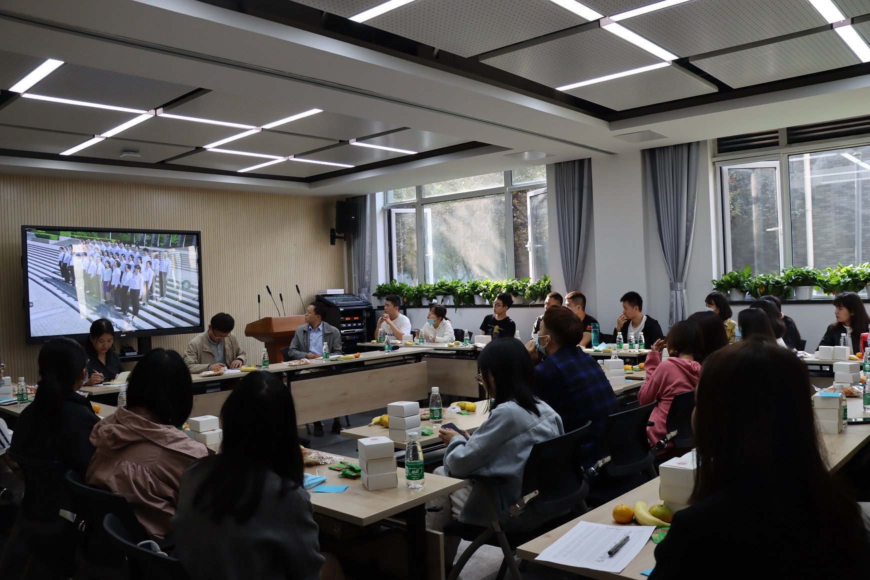 10月1日下午,传媒与设计学院组织34名绿色通道留校学生参加座谈联欢会,座谈会由18级辅导员赵晓萌主持。