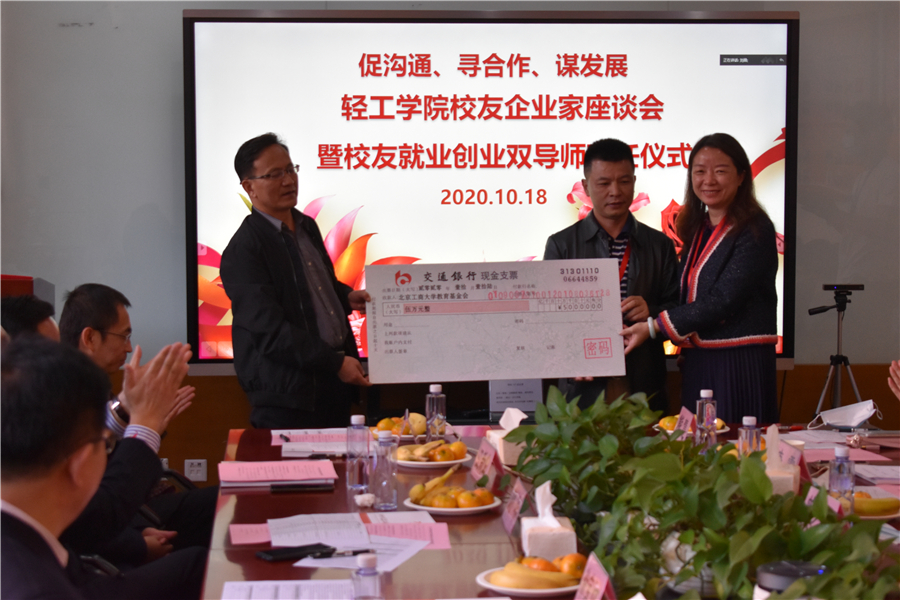 10月18日下午,“促沟通、寻合作、谋发展”——轻工科学技术学院校友企业家座谈会暨校友就业创业双导师聘任仪式在阜成路校区举行。学院领导、各系室主任、辅导员老师和校友企业家代表出席会议。在做好常态化疫情防控工作的前提下,会议以线上与线下相结合的方式召开,三十余名本科生、研究生学生代表参与线上会议。会议由学院党委副书记熊慧主持。