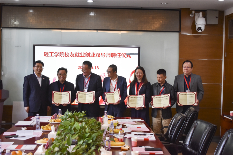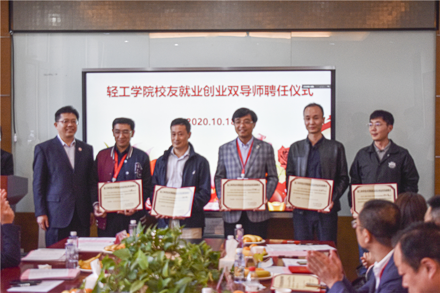 在校友就业创业双导师聘任仪式上,学院党委书记郑福平教授为13位到场的校友企业家代表颁发聘书并发表总结讲话。郑书记表示, 非常欢迎校友企业家返校参加活动,希望今后能够和在校生进一步加强互动和交流,引导在校生做好职业生涯规划,增强对专业学习的热爱和对轻工行业发展的信心,促进校企联合,共同为人才培养作出贡献。