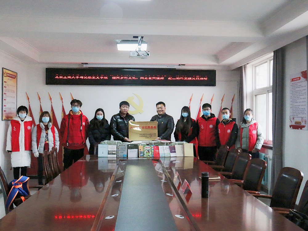 在村委会议室,樊江涛代表马克思主义学院向二站村捐赠了近二百本图书,用于设立村民图书角,这是我校对口“引智帮扶”二站村的一项工作,由马克思主义学院承办。二站村第一书记刘文彬代表村委接收了图书,并对我校持续多年无私帮扶二站村文化建设深表感谢。