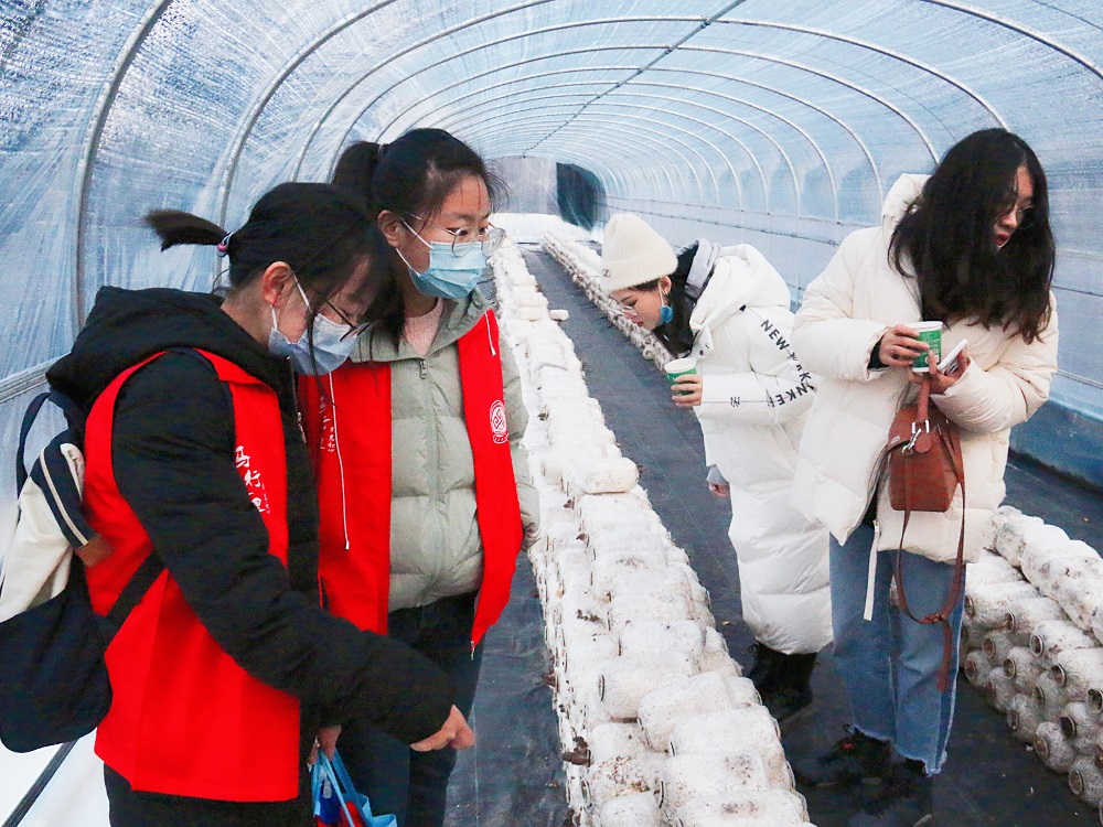 随后,刘文彬带领师生参观了村容村貌和低收入产业基地。二站村曾是依托砖厂繁荣的“富裕村”,遵循生态文明建设要求关闭了砖厂,在村委带领下,全村找准产业转型升级方向,兴办“种桑养桑”为核心的桑叶茶生产基地,目前已初见成效。同学们参观了桑叶茶和速冻食品生产车间、菌菇大棚,了解了茶叶种植、生产和由此带动的菌菇种植、速冻食品产业。厂长热情地讲解演示,并邀请同学们品茶,大家体会到保护绿水青山、抓好生态文明建设、实现人与自然和谐统一对于振兴乡村的重要意义。二站村近些年的基础设施建设成效也让同学们感受到贯彻“以人民为中心”发展思想、做好民生工程的深刻内涵。