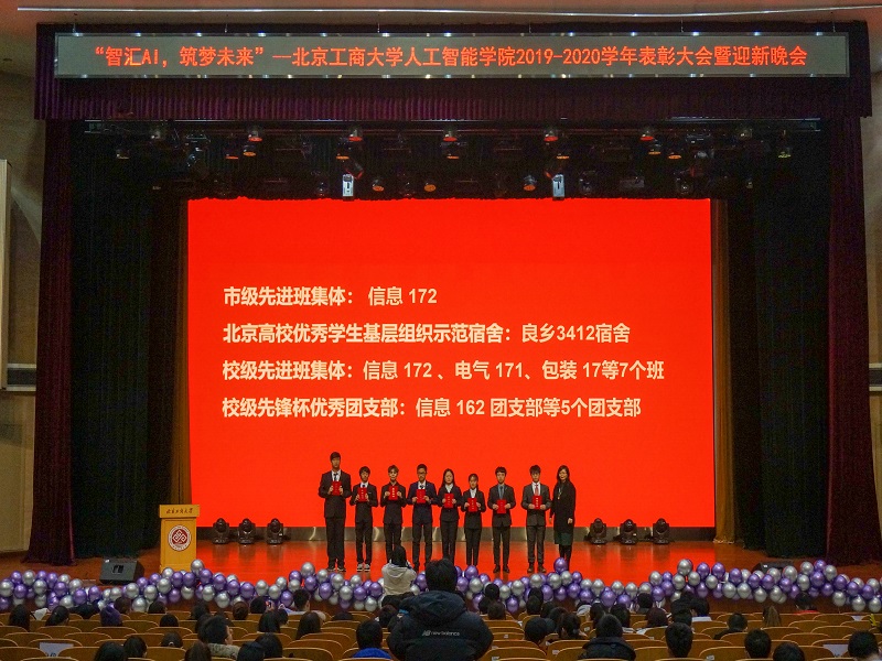 12月17日,人工智能学院在良乡校区举办以“智汇AI,筑梦未来”为主题的2019-2020学年表彰大会暨迎新晚会。学院党委书记黄志刚,院长于重重,党委副书记杨立功,副院长廉小亲、李宝河、孙晓荣,院长助理李刚,学院各系教师代表、各年级辅导员,以及来自学校各学院的教师代表参加大会。
