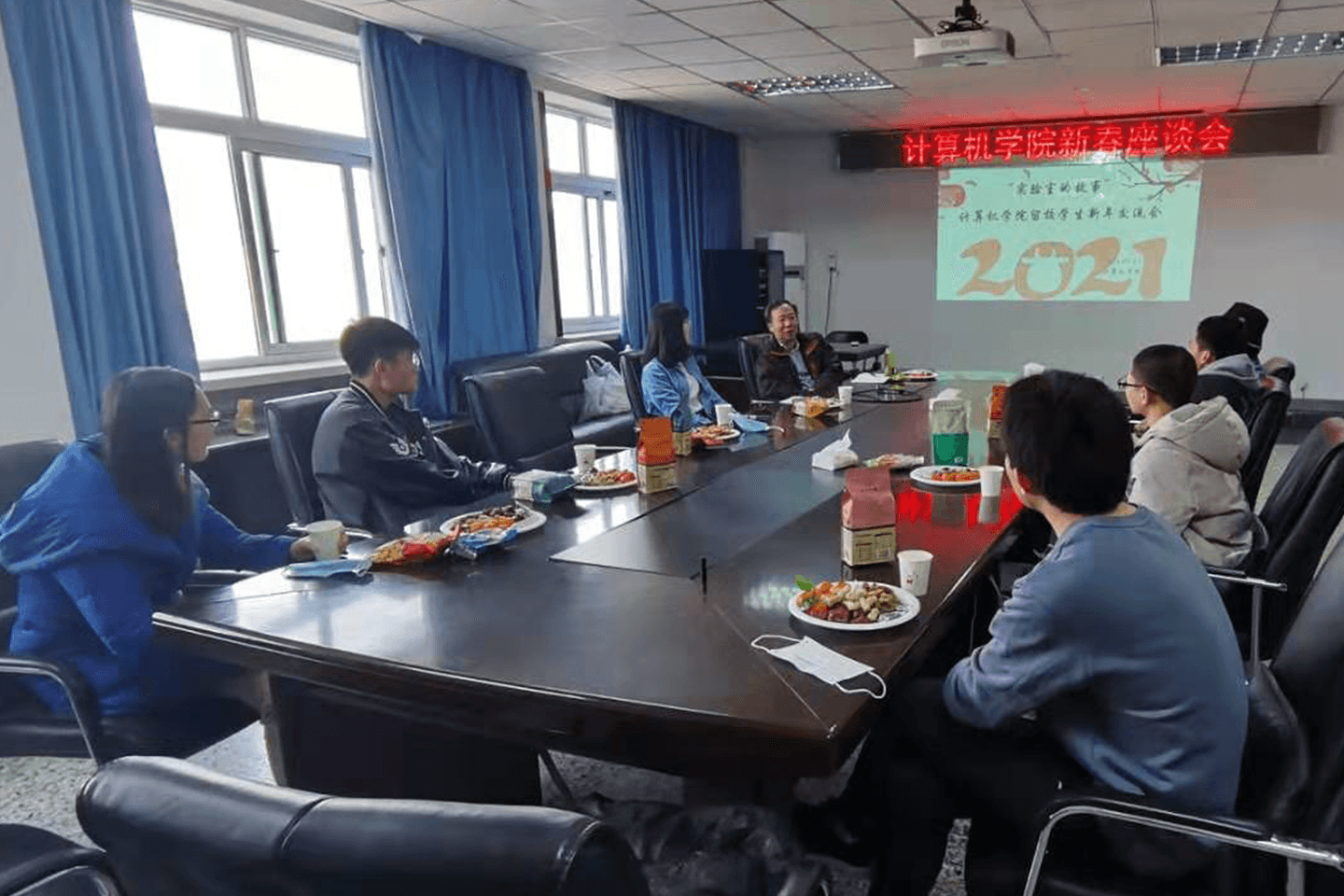 2月12日大年初一,为缓解留校过年学生的思乡情绪和学业压力,计算机学院党委书记蔡强和学院全体留校学生相聚在阜成路校区,召开了以“实验室的故事”为主题的新年交流会,一起回眸昨天、畅想未来。交流会由高翠主持。