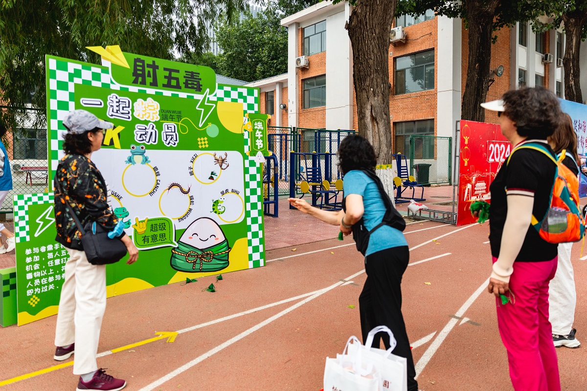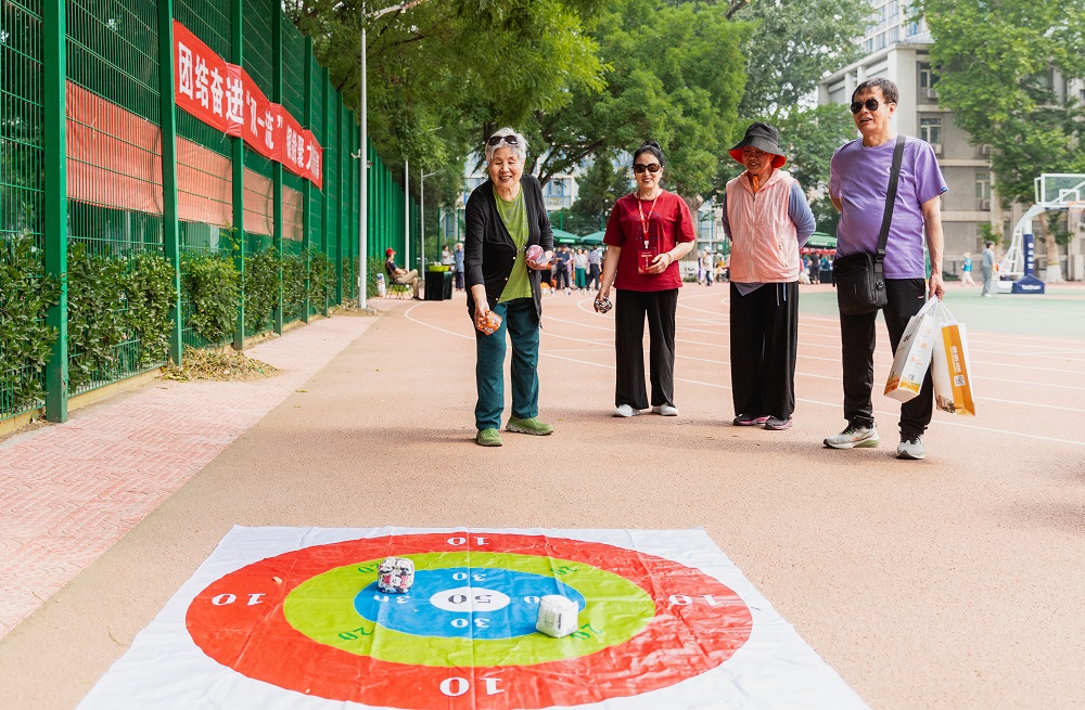 本次活动的主体项目是精心设计的趣味运动,让每位参与者都能在轻松愉快的氛围中享受运动的乐趣。“筷子夹球”项目需要在最短的时间内用筷子夹出乒乓球再放入指定位置,锻炼老年人的手指灵活度。“足球飞镖”“沙包掷准”“冰壶”“动感单车”锻炼老年人的四肢精准度和力量。“投箭入壶”“吸盘射箭”、端午节民间传统游戏“射五毒”“捶丸”既体现了传统文化,又结合了现代技术,为健康运动增添了科技感。“木球攻门”“套圈寻宝”既考验了策略思考,又增加了运动的趣味性。模仿游戏角色用弹弓将小鸟射向小猪的项目“愤怒的小鸟”充满童趣,吸人眼球,既考验参与者的力度控制,又激发了竞技激情。“抓娃娃”让老同志回到了童年时光,感受到满满的童趣。丰富的趣味运动项目寓意“点亮色情片”,老同志们在参与中提高了健康理念,增添了生活乐趣,增强了为首都增光添彩的良好心愿。