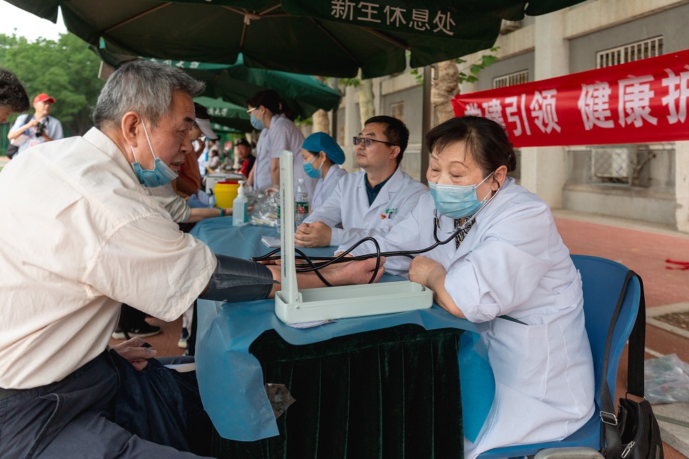 校医院党支部也在现场以“党建引领,健康护航”为主题,开展了特别的健康关怀活动,旨在为离退休教职工提供全面的医疗健康服务,为老同志健康养老保驾护航。校医院派出专家义诊,包括测量血糖血压、解读体检报告、结核病防治宣传、医保政策宣讲以及健康咨询等一系列温馨服务。许多老同志表示,这样的活动让他们充分感受到了党和政府的关怀,深切感受到学校对老同志的尊重与照顾。