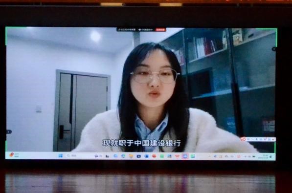 金融202班熊栎盈讲述签约中国建设银行的求职经历,鼓励同学们积极参加线下招聘,并提醒同学们在面试过程中注重礼仪和细节;上岸东城区市场监督管理局的金工202班的李希明详细分享了他学习备考公务员的经验,建议同学们要心无旁骛完成目标,不断突破自我。