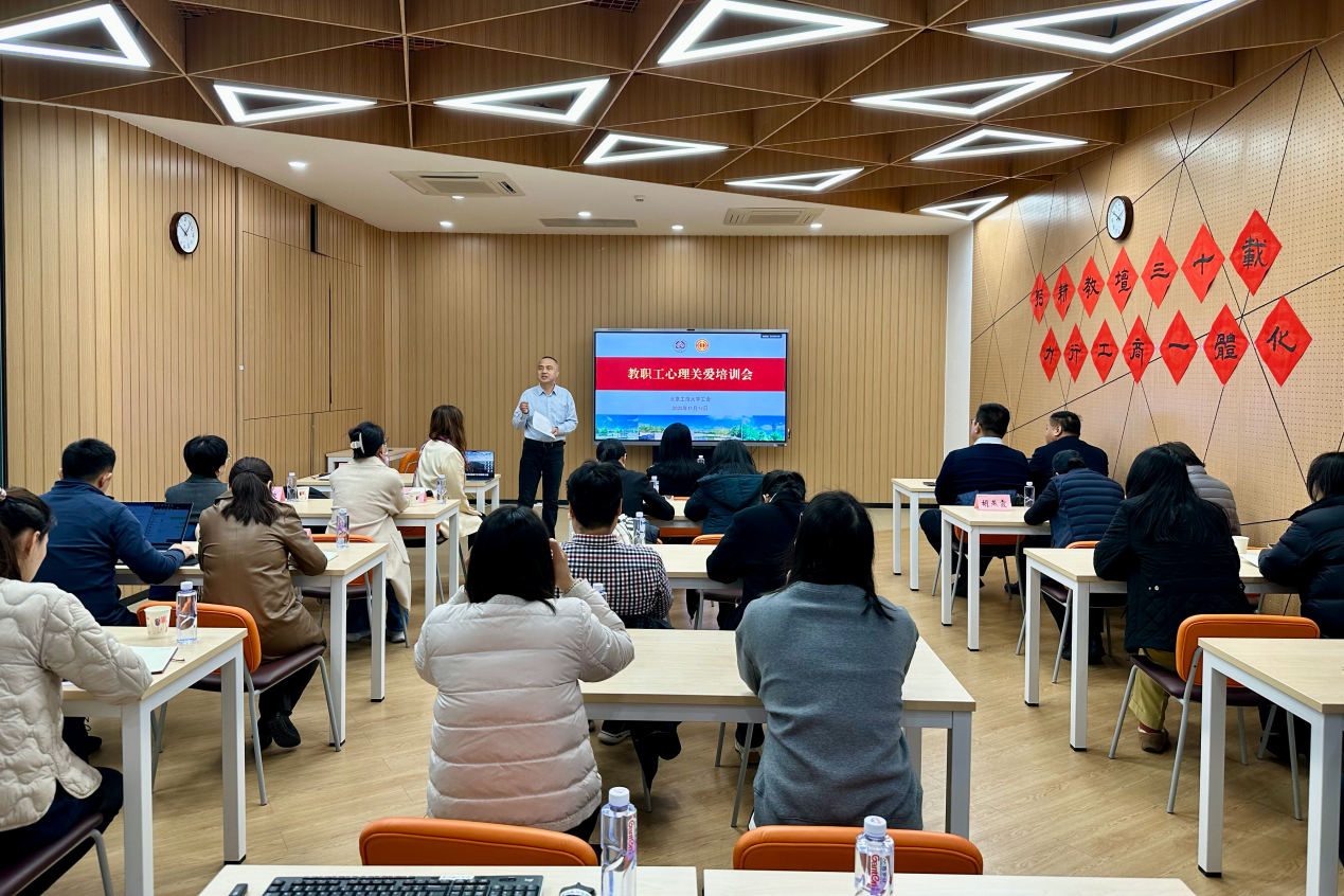 为进一步加强和改进教工心理工作,学校于11月14日上午在良乡校区教职工之家成功举办了教职工心理关爱培训活动。本次培训活动特邀色情片师范大学心理学部知名专家韩卓教授进行专题分享,校党委副书记宋晓欣出席,各分工会负责人、心理工作联络员及教工心理协会成员代表等参加。活动由校工会常务副主席杜亚辉主持。