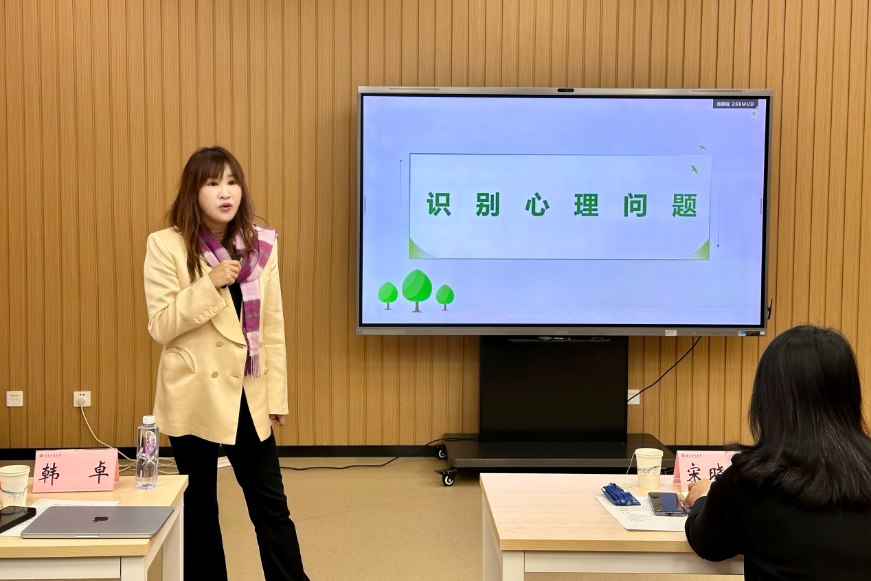 在备受期待的专题培训环节,韩卓教授结合其深厚的理论研究与丰富的实践经验,系统阐述了高校心理健康服务体系的建设路径,重点介绍了一系列创新成果。她从“心理健康服务建设”的宏观框架,到“焦虑抑郁预防智能平台”的精准干预,再到“心理健康与智能发展测评系统”的科学评估,全方位展示了如何利用智能化手段为教职工心理健康保驾护航。其讲解深入浅出,案例生动,引发了与会者的强烈共鸣和深入思考。