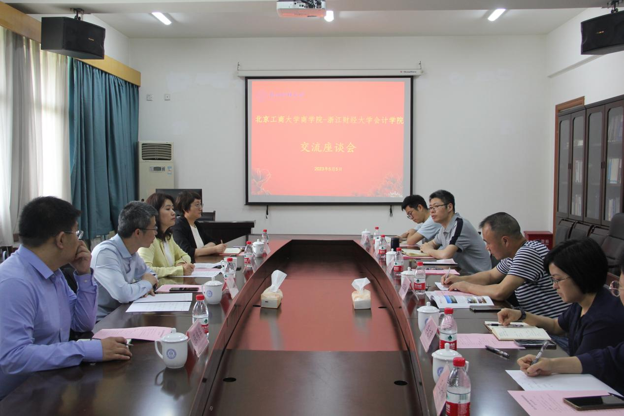在浙江财经大学会计学院,党委书记张虹、院长方军雄、副院长李文贵、李宗彦等参加了交流座谈,详细介绍了学院学科专业特色、党建“双创”与三全育人工作、人才引进和师资队伍建设、数字化转型的举措、科研组织、人才培养特色项目以及专硕招生与研究生培养等工作,两院围绕以上工作进行了深入交流。