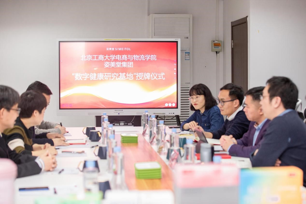 在授牌仪式前,双方就共建基地合作事项进行了深入座谈交流。徐熙明介绍了姿美堂集团情况,作为一家以数字化经营健康和美丽事业的公司,姿美堂将“用数字,链接美好与健康”作为集团使命。为践行这一使命,姿美堂不但通过自身数字化建设,强化数字与智能对客户经营和组织管理的能力;还通过数字化应用和跨界交流合作等形式,率先在大健康领域以数字化促进产业价值转化,让数字这一指数增长新要素引发行业关注和重视。通过本次合作,姿美堂立足数字化大健康前沿,通过产学研合作的形式,连接起学术界与产业界,让数字技术与实体经济融合更加深入。