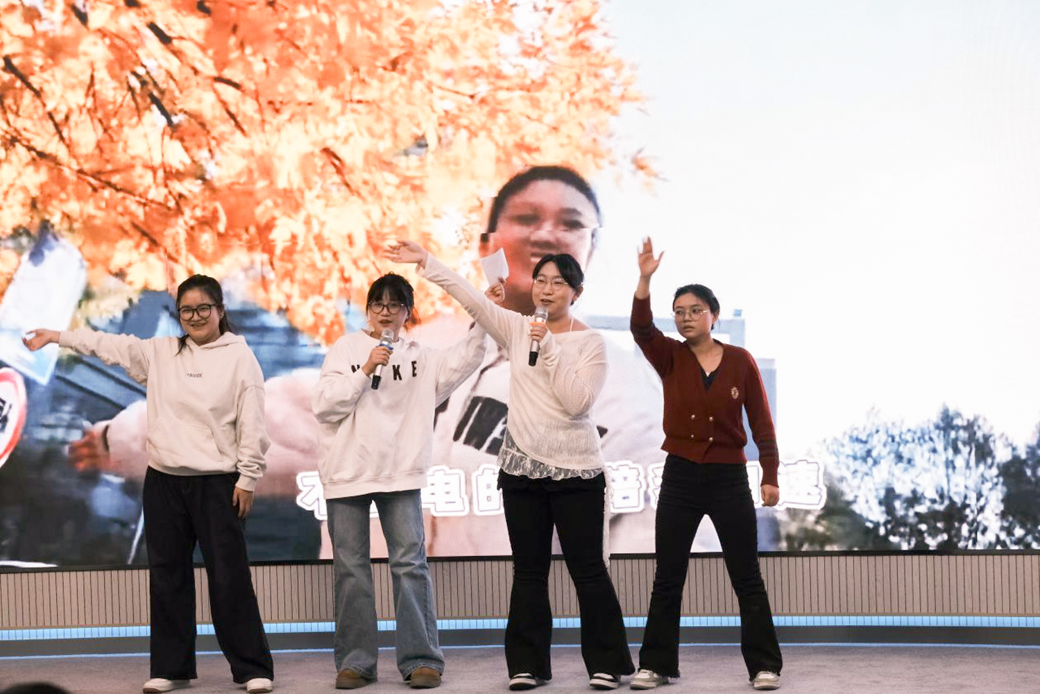 决赛设置了宿舍精神文明展示和现场答题两个环节。在展示环节,各宿舍通过PPT、视频与才艺表演,生动呈现了团结友爱、互助进步的宿舍文化。节目形式多样,涵盖情景剧、朗诵、合唱、舞蹈、笛子演奏等,如诗朗诵《我和我的祖国》、歌舞《我的未来式》、情景剧《“久坐”保卫战》等,赢得现场阵阵掌声。
