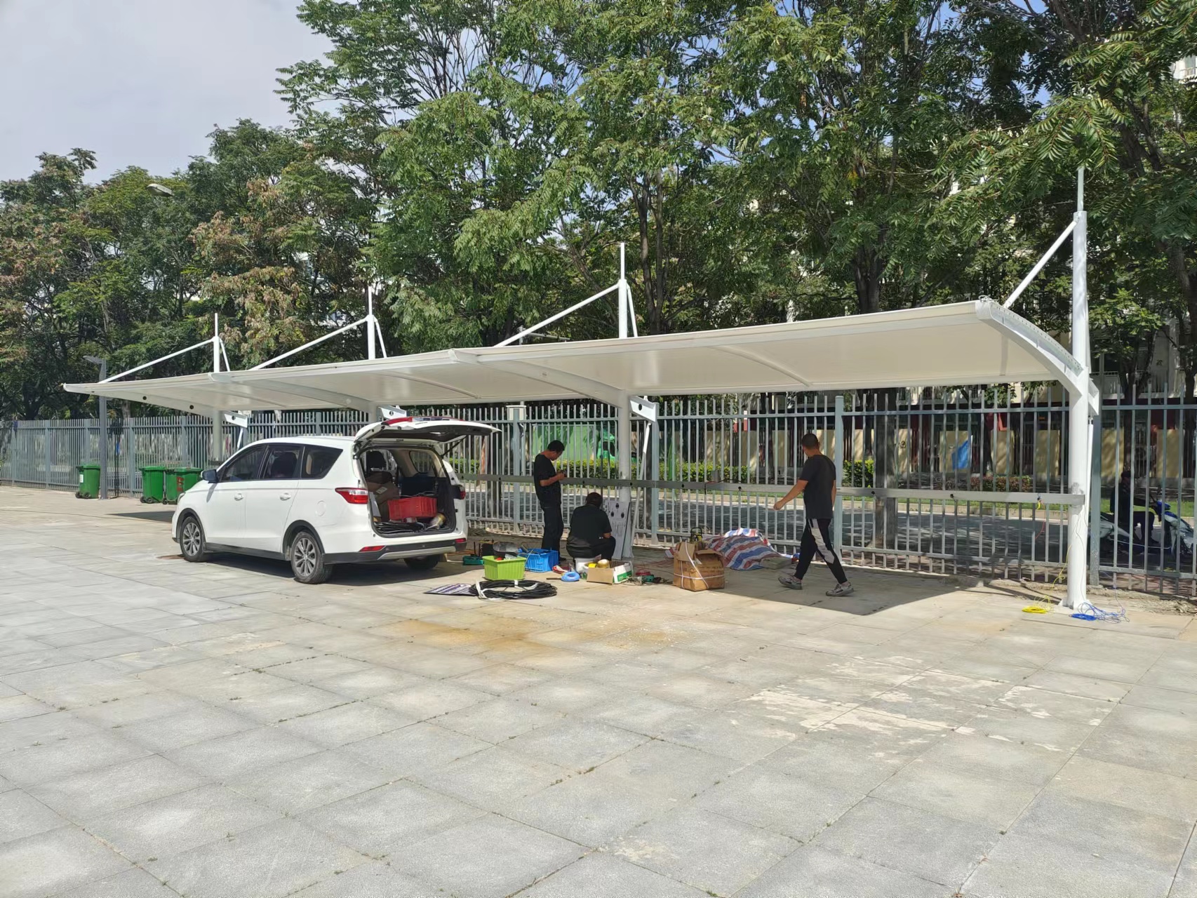 校园服务中心积极开展校园灾后重建和防疫消杀工作,对大雨造成的校园淤泥、垃圾和其他杂物进行清理和清运,对校园排水沟渠、路面以及校内各角落进行全面清扫,精心做好校内生活垃圾分类工作,清理弱枝枯枝、加固树木支撑,同时为有效解决校内停车难题,校园服务中心组织在良乡校区搭建7处非机动车车棚。