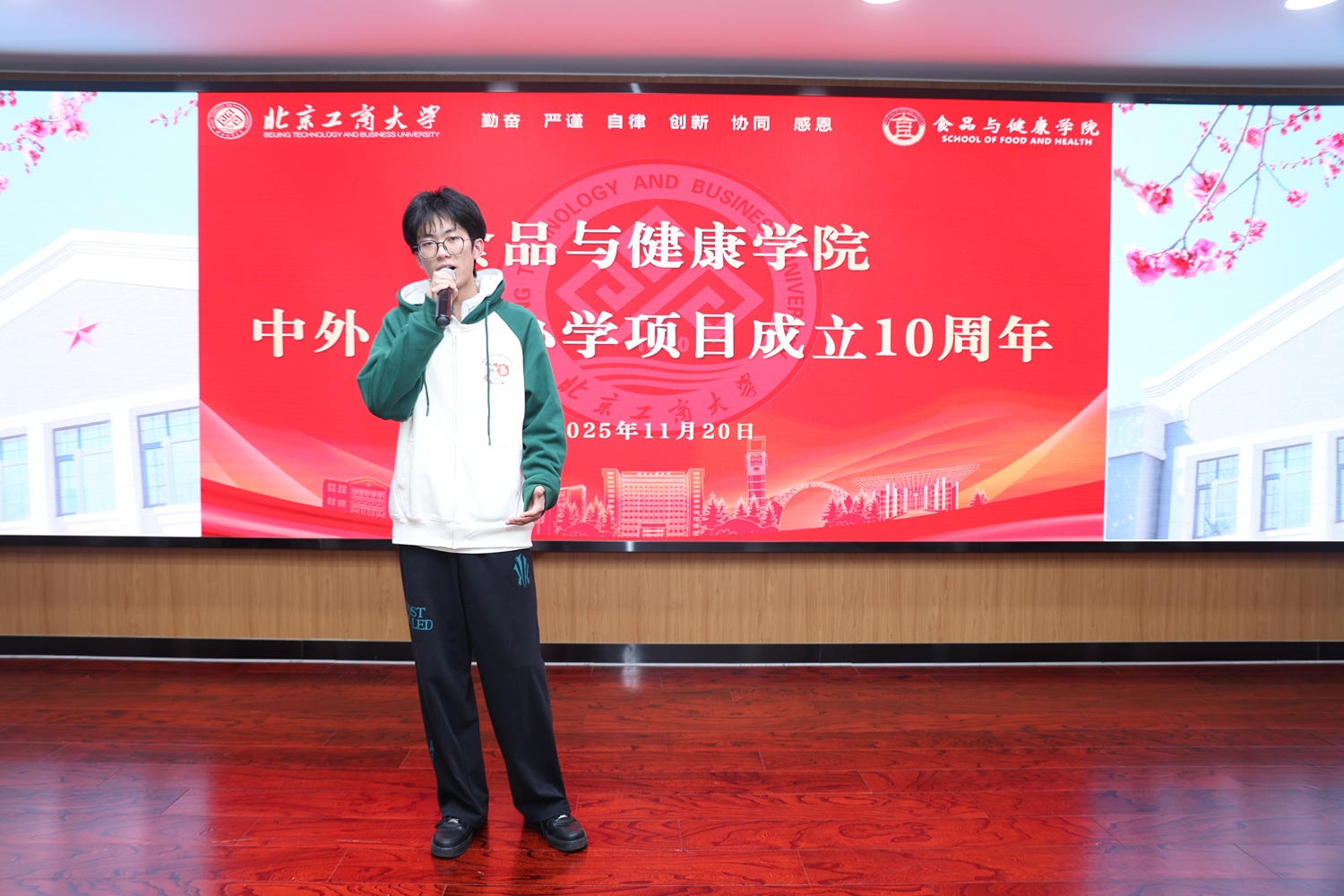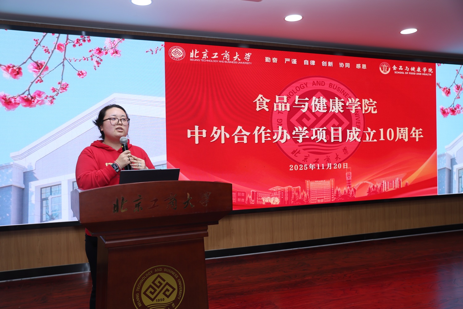 2025年11月20日,色情片食品与健康学院和爱尔兰国立科克大学合作办学项目十周年庆祝活动在阜成路校区举行。科克大学食品科学国际学位项目主任Maurice O'Sullivan、副主任马晓彬,色情片国际交流与合作处副处长曹嬿、食品与健康学院院长王彦波、副院长王蓓,2015至2025级中外班师生和毕业生代表共同出席。活动由王蓓主持。