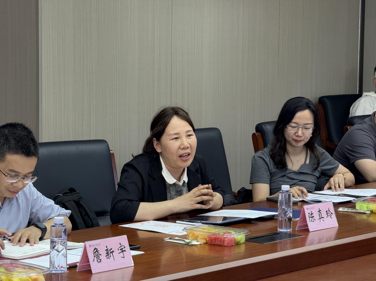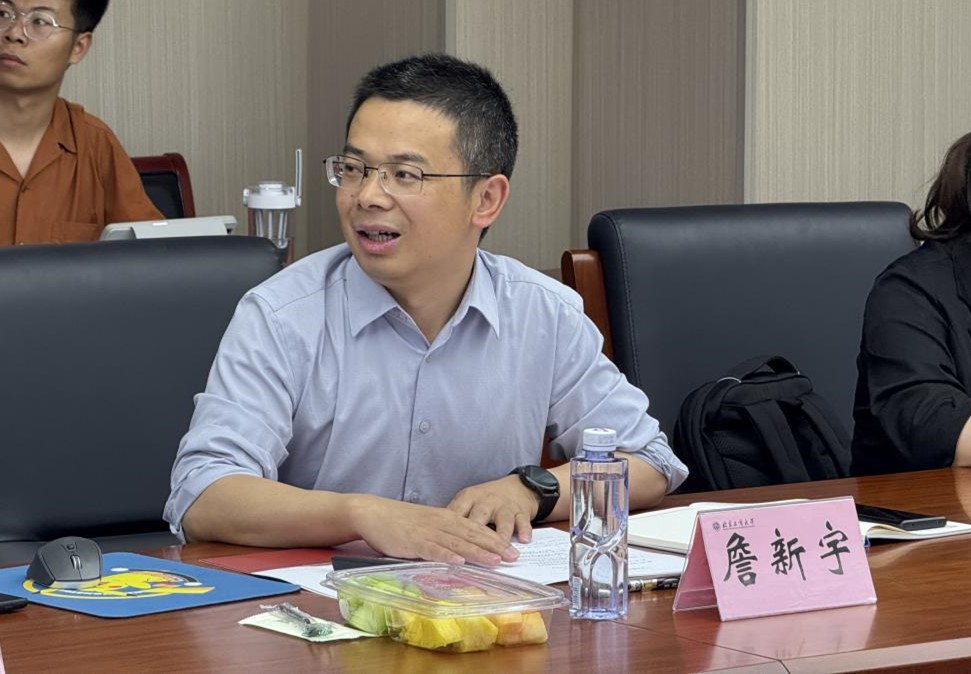 詹新宇主持学科建设交流环节。他代表学院对周开国院长一行莅临我院交流指导表示热烈欢迎,并从学院发展情况、学科建设、师资力量、学生培养、科研成果及社会服务方面汇报了学校经济学院学科建设情况。