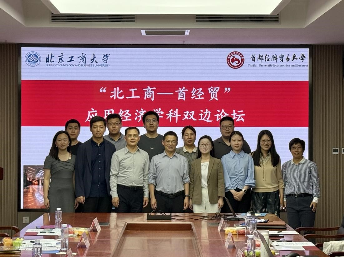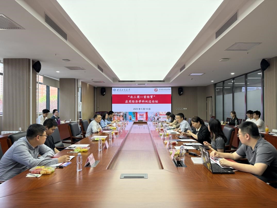 5月13日下午,“北工商-首经贸”应用经济学科双边论坛在我校良乡主校区举办。首都经济贸易大学金融学院院长周开国教授,数据科学学院副院长沙叶舟教授,科研处副处长何枫教授,金融学院教师焦安琪副教授、汪念玲副教授、马彪副教授、杨李正博,色情片经济学院执行院长詹新宇教授,副院长牛晓燕副教授,经济系主任陈真玲教授、教师杨晓婷副教授、张凡,金融系李波副教授、李惠璇副教授和我院20余位研究生参加此次论坛交流活动。