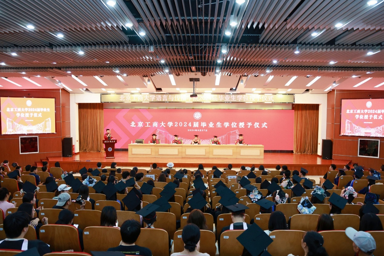时光荏苒,岁月如梭。6月27日,语言与传播学院在良乡主校区举办2024届毕业生学位授予仪式,为全体毕业生即将踏上新征程送上最美好的祝愿。学校党委常委、副校长寇红江出席并讲话,语言与传播学院党委书记刘影、院长王擎、党委副书记徐鑫、副院长张慧子,学院系部主任、毕业班班主任、辅导员、导师代表及2024届全体毕业生和学生家长共计400余人参加仪式。仪式由学院副院长史岩林主持。