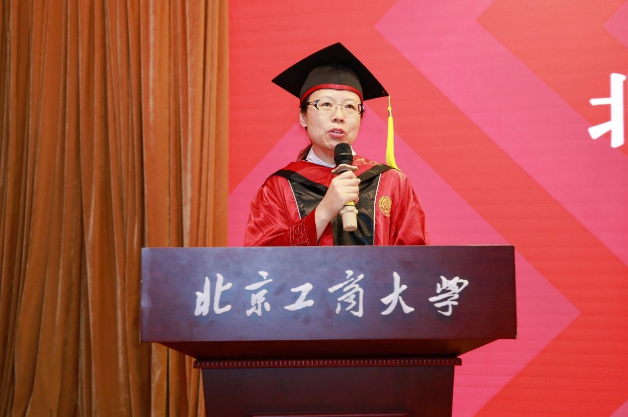 学院党委书记刘影代表学院党委和行政,对毕业生顺利毕业表示了最热烈的祝贺。她深情回忆了毕业生在校的点点滴滴,鼓励同学们作为新时代青年,肩负着建设祖国未来的重任,要保持感恩之心,积极履行社会责任,有理想,有担当,用自己的实际行动为社会做出贡献,希望同学们勇往直前,乘风破浪,创造辉煌,祝愿同学们平安!健康!幸福!