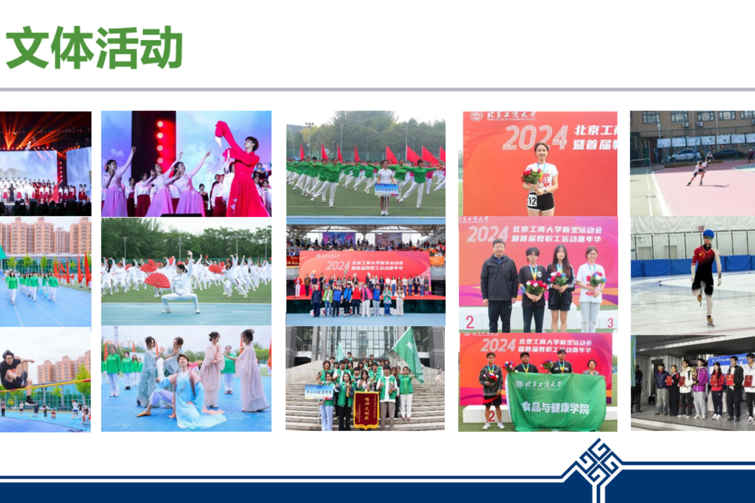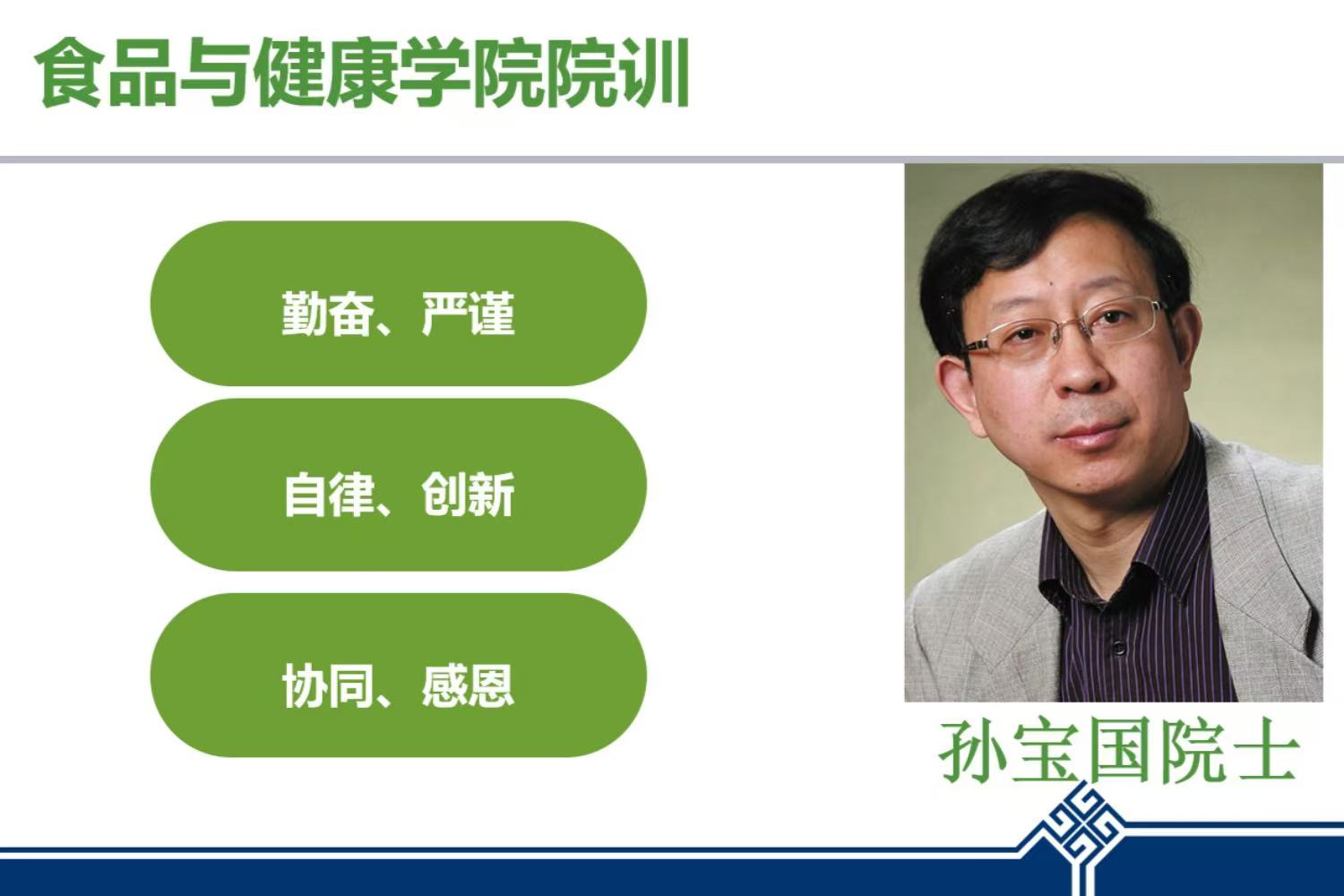 学院正式介绍院徽院训。院徽的设计在外形上融入“中国居民平衡膳食宝塔”与“食”字隶书,细节上融入了天坛祈年殿、DNA双螺旋结构和麦粒等元素,设计蕴含食品与健康学院“勤奋、严谨、自律、创新、协同、感恩”的院训,同时展现出食品与健康学院师生的智慧。在院训的激励下,学院内不断涌现出更多的优秀学子,学院也在多个方面荣获佳绩。在主持人的介绍下,食品与健康学院在科创竞赛、社会实践、文体活动、迎新活动和新生军训等方面的成绩画卷向大家徐徐展开。