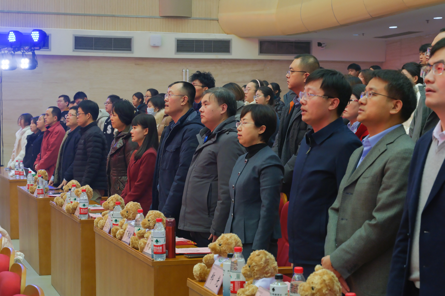 大会在庄严的国歌声中开始,全体师生肃立,共同奏唱国歌。