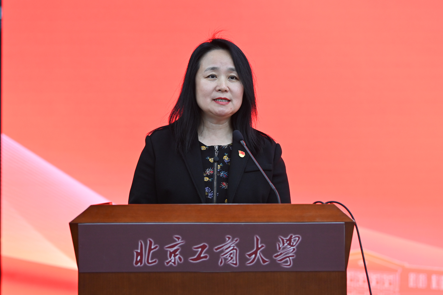 党委副书记宋晓欣代表学校党委对大会的召开表示祝贺。宋晓欣肯定了机关党委坚持围绕中心、推动发展、凝聚人心、服务群众,在学校事业发展中较好地发挥了管理、服务、协调、监督、保障作用,勉励机关全体党员要深入学习贯彻习近平新时代中国特色社会主义思想和党的二十大、二十届三中全会精神,以更大作为融入和服务新时代首都发展,以更强的历史主动精神,全面推进机关党建和事业高质量发展。她对机关党建工作提出四点希望,一是充分发挥党建引领作用,为机关事业高质量发展提供坚强保障;二是坚决落实立德树人根本任务,培养担当民族复兴重任的时代新人;三是坚持走内涵式发展道路,服务支撑学校高水平研究型大学建设;四是持之以恒推进全面从严治党,营造风清气正的政治生态。