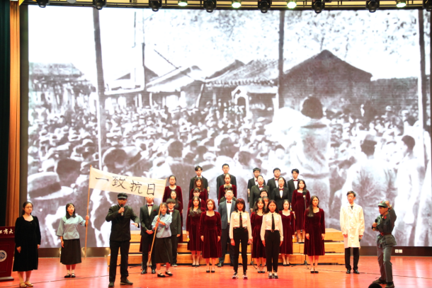 全场师生观看了由商学院团委特制的纪念“一二·九”运动视频后,活动正式开始。