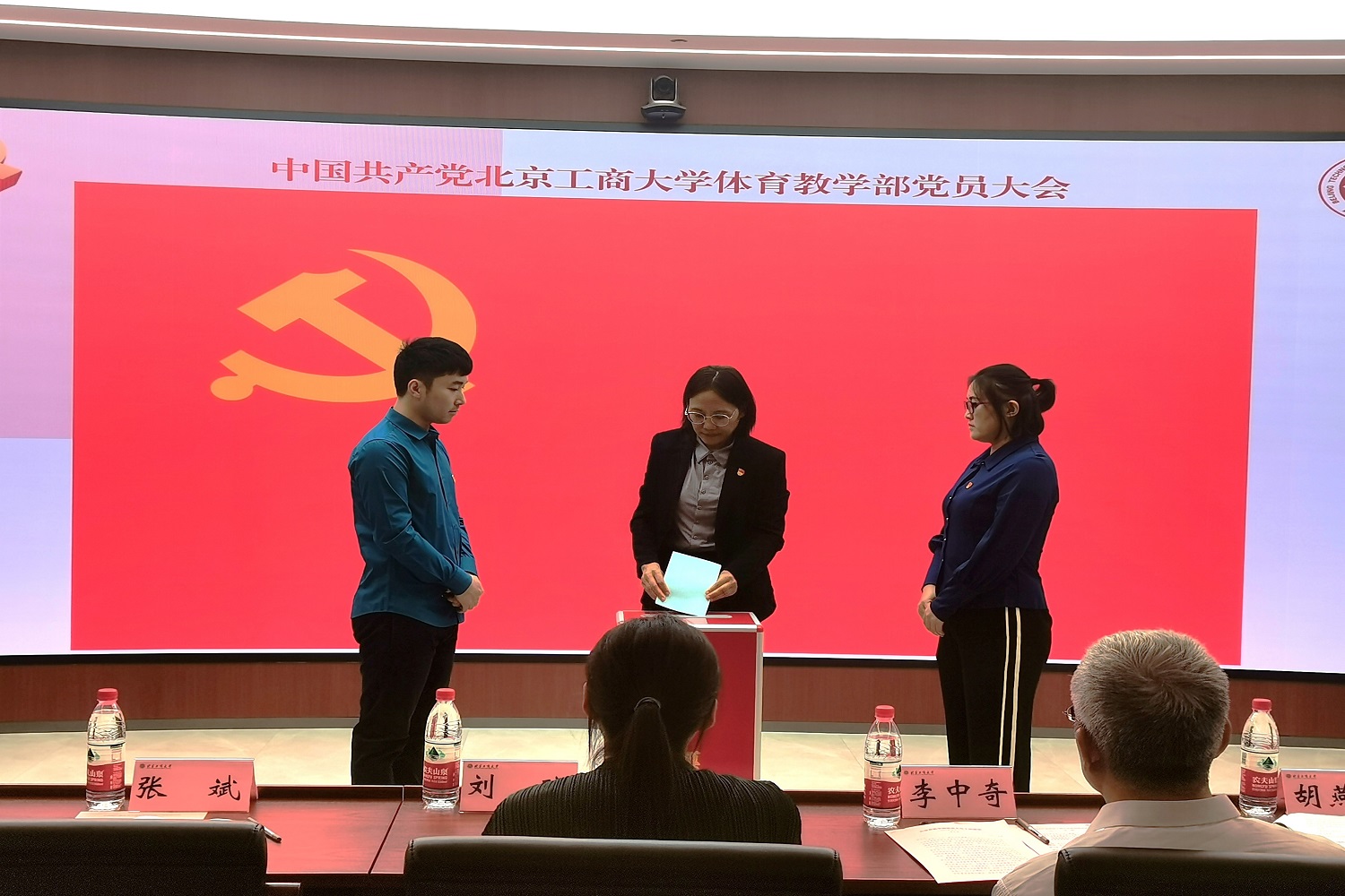 大会审议通过了支部工作报告和党费收缴、使用和管理情况报告。经过民主表决通过了新一届体育教学部直属党支部委员会委员候选人名单、大会选举办法、监票人和计票人名单。总监票人劭喆主持选举工作,经过无记名投票,大会差额选举产生了5名新一届党支部委员。