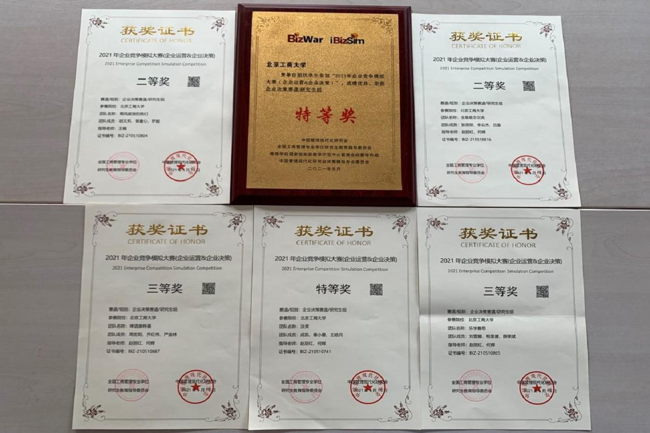 5月16日,我校商学院师生在2021年全国企业竞争模拟大赛中喜获6项奖项,其中优秀组织奖1项、特等奖1项、二等奖2项、三等奖2项。