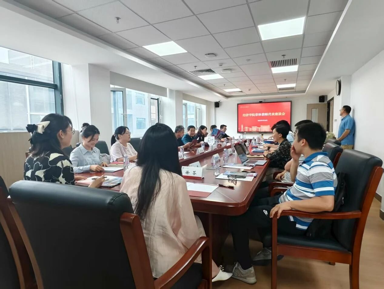 感恩奉献,致敬芳华。在第 41 个教师节来临之际,9月10日下午,经济学院在良乡校区学院会议室召开2025年荣休教师座谈会,向为学院发展倾注毕生心血的荣休教师致以节日的问候与崇高的敬意。2025年荣休教师代表杨德勇、栗书茵、马乃云、吴强、潘宏,学院党委书记张春萍,执行院长詹新宇,副书记李艳春,副院长牛晓燕、许敬轩、马雪娇,中青年教师代表郭娜、张正平、邓磊、徐芬及新入职教师参加座谈会。会议由马雪娇主持。
